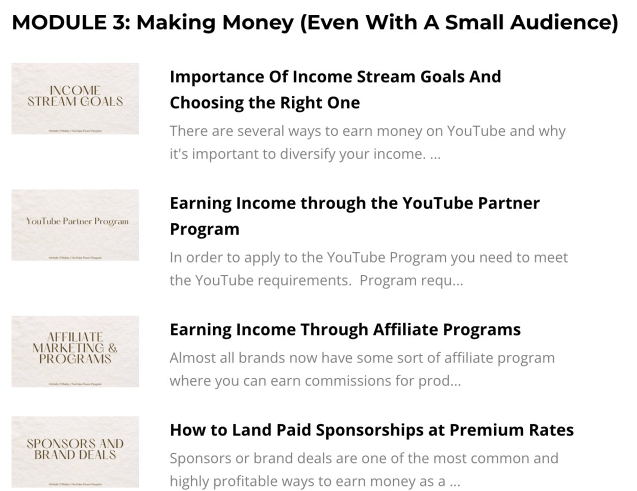 ✔  Don't waste months or even years figuring out how to grow your channel.  The YouTube Power Program will give you step by process to grow your channel based on the monetization goals you set. No more wasting time guessing on what to do next or how to do it!